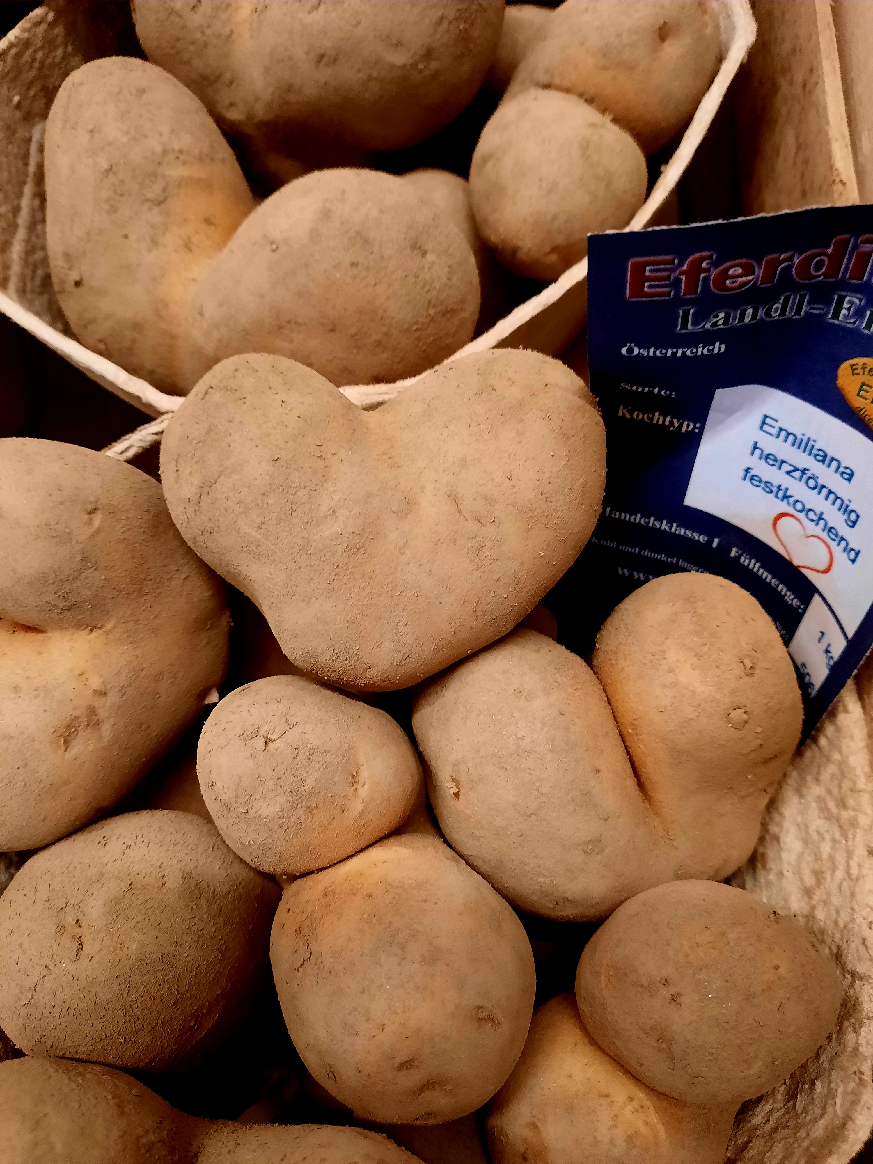 Ein Kartoffelherz ist ein „unförmig“ gewachsener Erdapfel. Im Durchschnitt befindet sich unter 3000 kg Erdäpfeln, je nach Sorte, ein Kartoffelherz. Vor dem Verkauf werden alle Erdäpfel am Verlesetisch sorgfältig kontrolliert, ob sie den Richtlinien des Handels entsprechen. Hierbei wird jedes gut aussehende Kartoffelherz händisch entnommen, separat gelagert und zum Kauf angeboten.