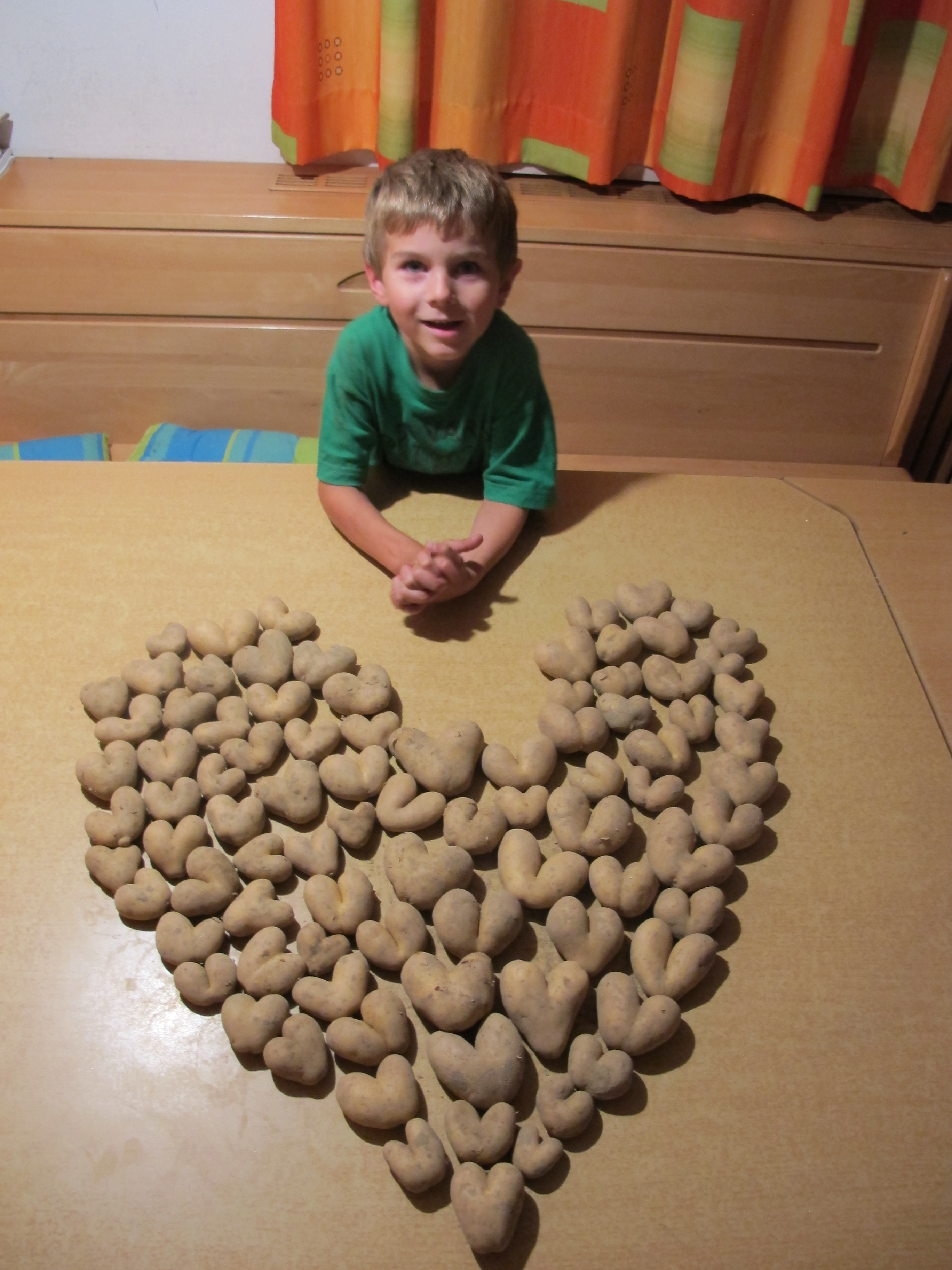 Die Idee zum Sammeln der Kartoffelherzen hatte unser Sohn Erich, damals im Alter von 5 Jahren, da er nicht verstand, warum diesen schönen, lustigen Erdäpfeln so wenig Beachtung geschenkt wird.