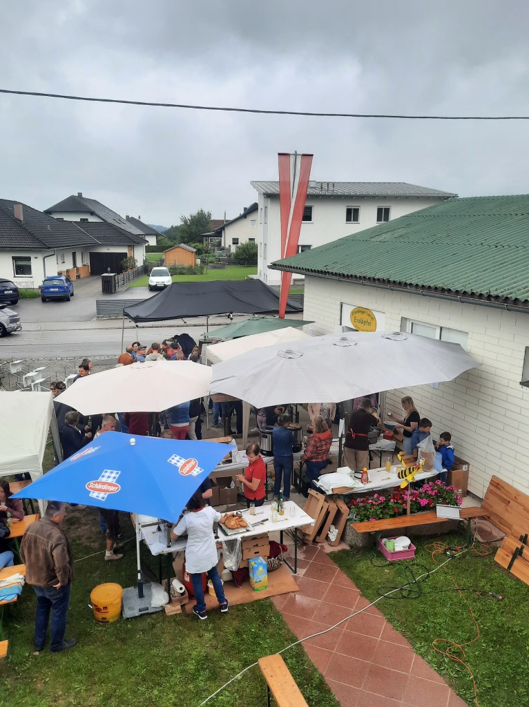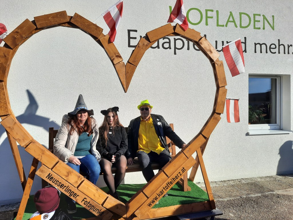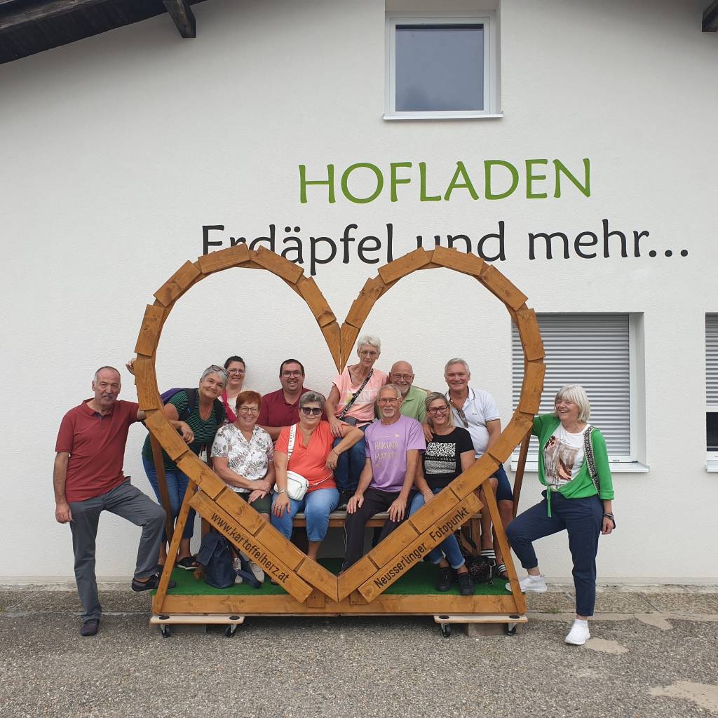 Eine gut gelaunte Urlaubergruppe beim Neußerlinger Fotopunkt. Wir wünschen euch schönen Aufenthalt im Mühlviertel.